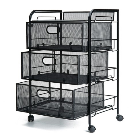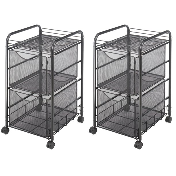Rolling file cabinet, hanging file folder cart on wheels, heavy duty mobile filing storage caddy with casters, mesh office file letter cabinet organizer made of steel with open top.